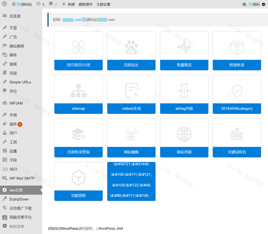 含百度站长、tag标签内链、百度地图sitemap、关键词排名查询监控、网站蜘蛛、robots、图片alt标签、天级推送、category隐藏、死链查询、百度自动推送、批量提交URL到站长、百度收录查询、批量推送未收录、301/404等功能。