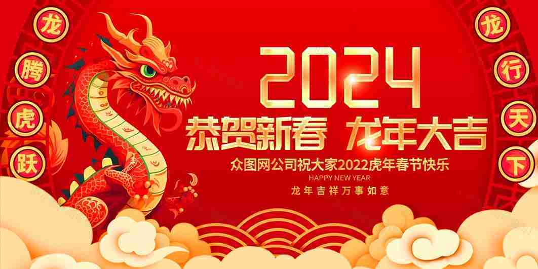 2024龙年海报展板 恭贺新春 龙年大吉PSD模板